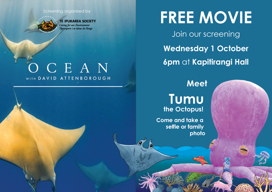 To further engage the local community, a screening of the new David Attenborough documentary Oceans was held at Kapitirangi Hall. The film offered captivating footage of marine ecosystems from around the globe, showcasing their diversity, complexity, and vital role in maintaining planetary health. It also shone light on the many threats our oceans face today from destructive fishing practices like bottom trawling and dredging, to overfishing and the exploitation of keystone species such as krill in the Antarctic.